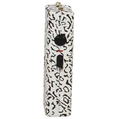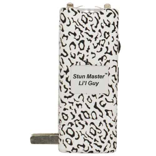 Stun Master Lil Guy 12,000,000 volts Stun Gun W/flashlight and Nylon Holster. This little stun gun is small and compact with 4.4 milliamps depending on the freshness of the batteries. It has a super bright, 100 Lumen, LED flashlight built in charger and comes with a nylon case. It measures only 3 3⁄4″ x 1 1⁄2″ x 3⁄4″. The safety switch is off when in the down position, middle position is the super bright LED flashlight, and in the up position the shock is turned on once the trigger is pressed. Available in Black, Pink, Purple, Red, Blue, Green, Animal Print.