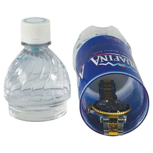 WATER BOTTLE DIVERSION SAFES – the best place to hide anything is in plain sight. According to the Chicago Crime Commission, a burglar spends an average of 8 minutes in the victim’s home. Put the odds in your favor by hiding your valuables in plain sight. The diversion safe is a unique home-security product that allows you to discreetly store your valuables in these containers that blend in with other items on your shelves.. We offer a wide variety of personal care, household products and food containers with removable tops and bottoms. Each is indistinguishable from the genuine product and is even weighted to feel full. The Water bottle comes empty. You fill it and push the cap on. The cap is shipped inside the safe. Interior Dimensions of safe 3 ½” x 2 ½”